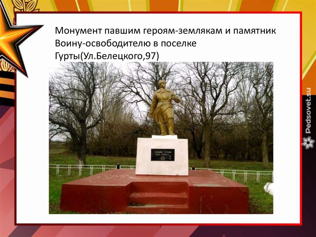 Монумент павшим героям-землякам и памятникВоину-освободителю в поселке