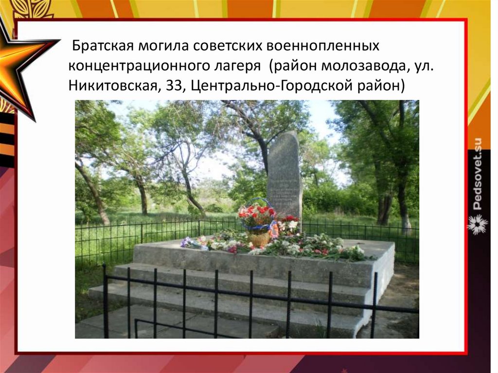 Братская могила советских военнопленныхконцентрационного лагеря (район молозавода, ул.