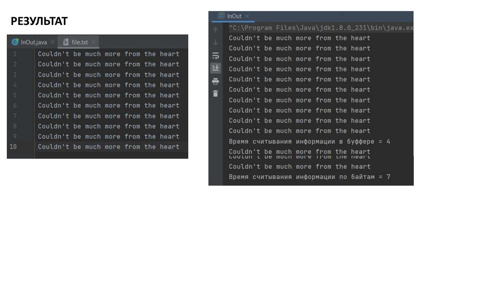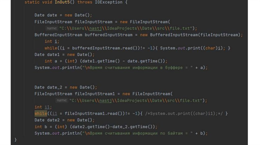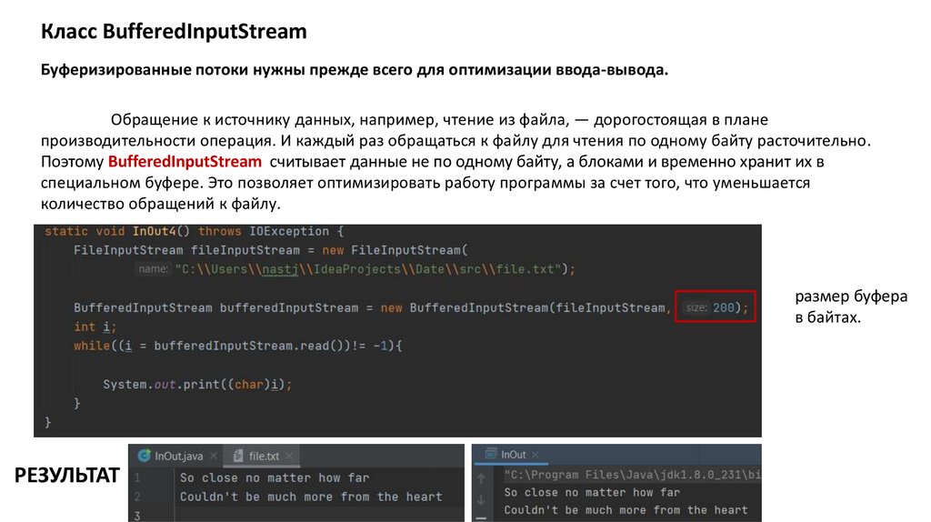 Поэтому BufferedInputStream считывает данные не по одному байту, а блоками и временно хранит их в