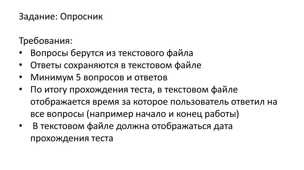• Вопросы берутся из текстового файла