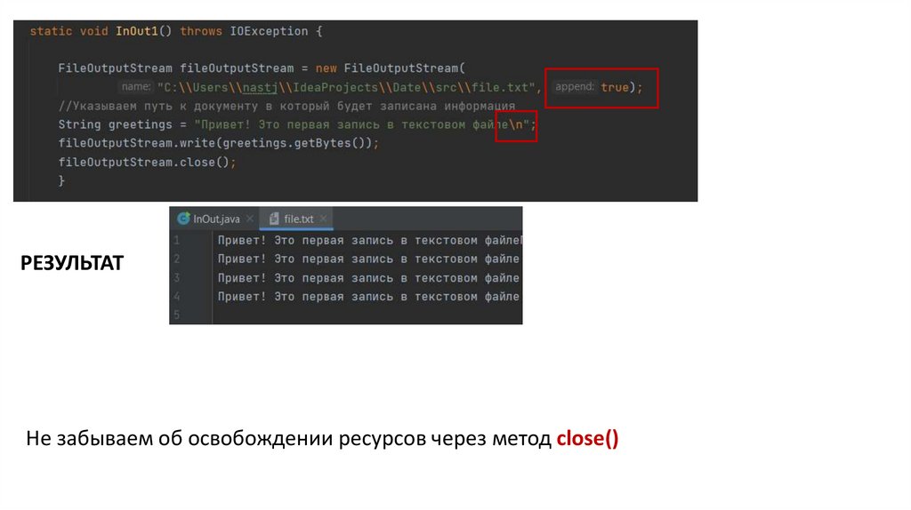 РЕЗУЛЬТАТHе забываем об освобождении ресурсов через метод close()