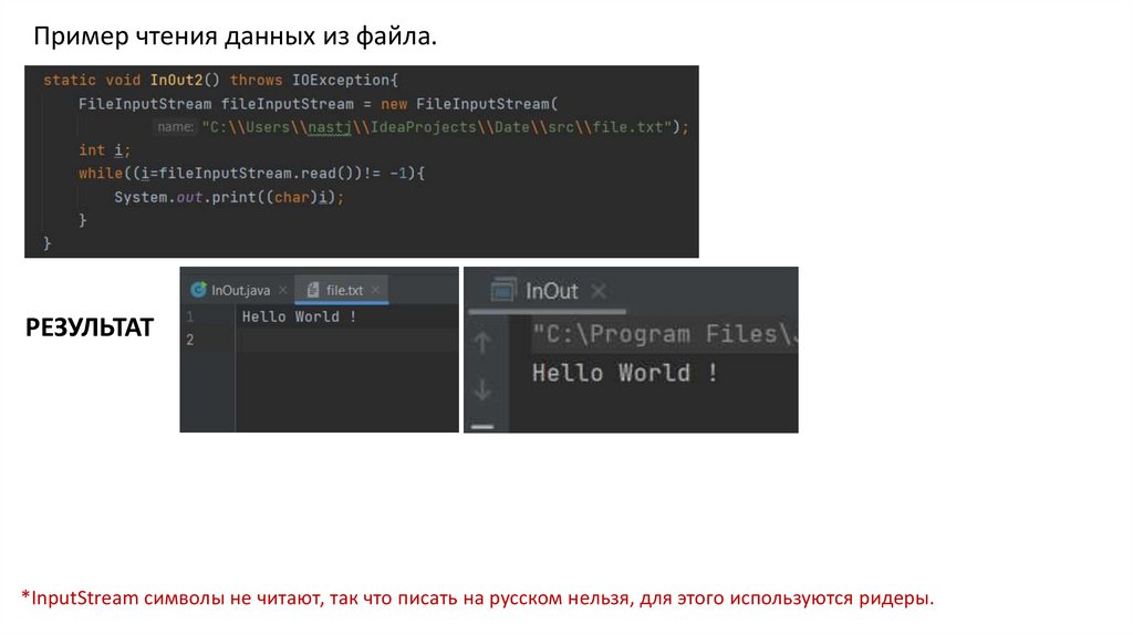 Пример чтения данных из файла.РЕЗУЛЬТАТ