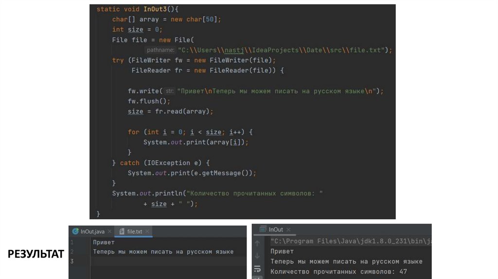 потоков, в частности классами FileReader и FileWriter соответственно, предназначенными для работы с