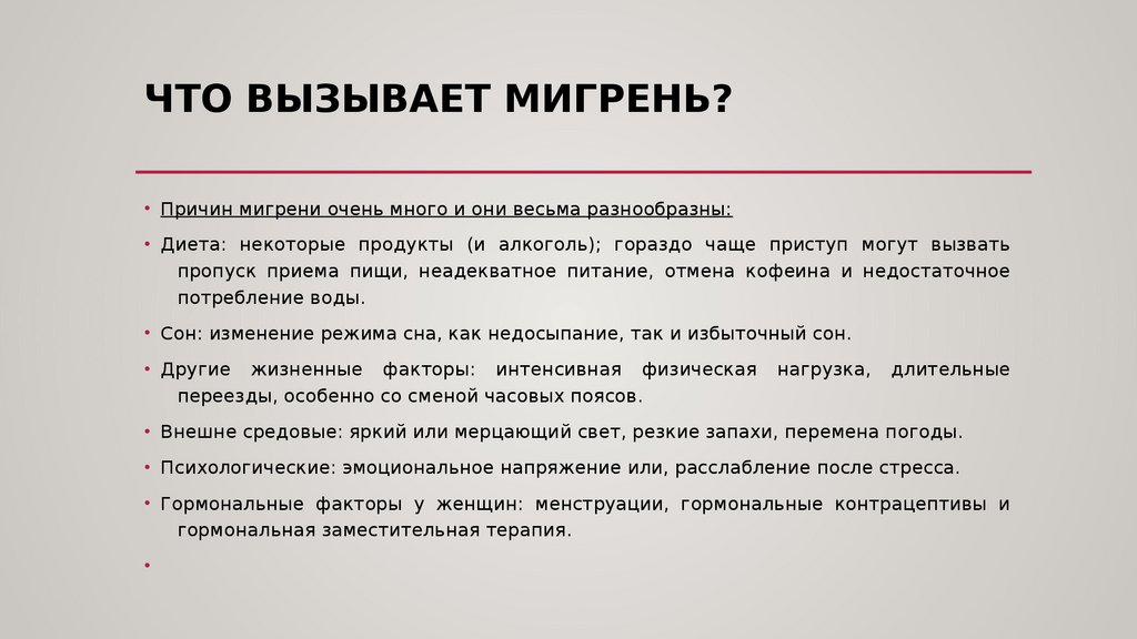 ЧТО ВЫЗЫВАЕТ МИГРЕНЬ?• Причин мигрени очень много и они весьма разнообразны: