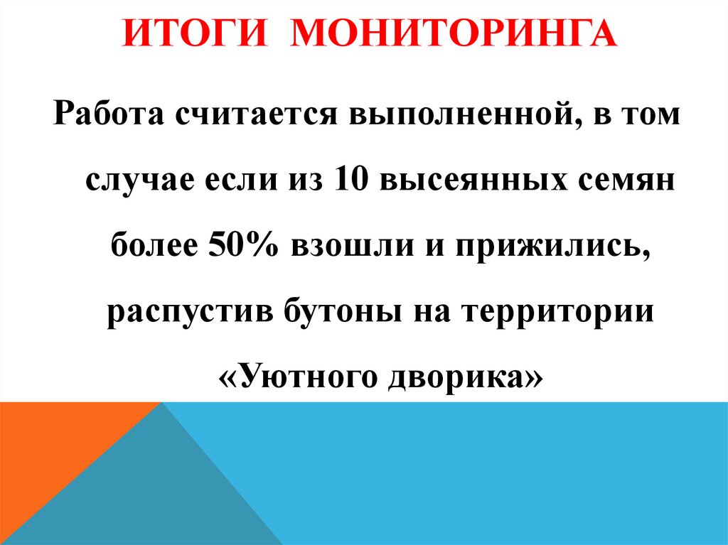 ИТОГИ МОНИТОРИНГАРабота считается выполненной, в том