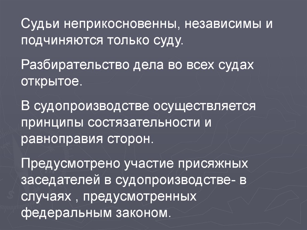Судьи неприкосновенны, независимы иподчиняются только суду.