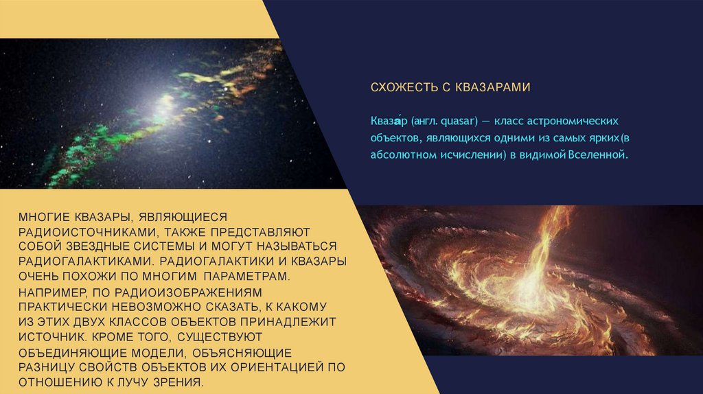 СХОЖЕСТЬ С КВАЗАРАМИКваза́р (англ. quasar) — класс астрономических