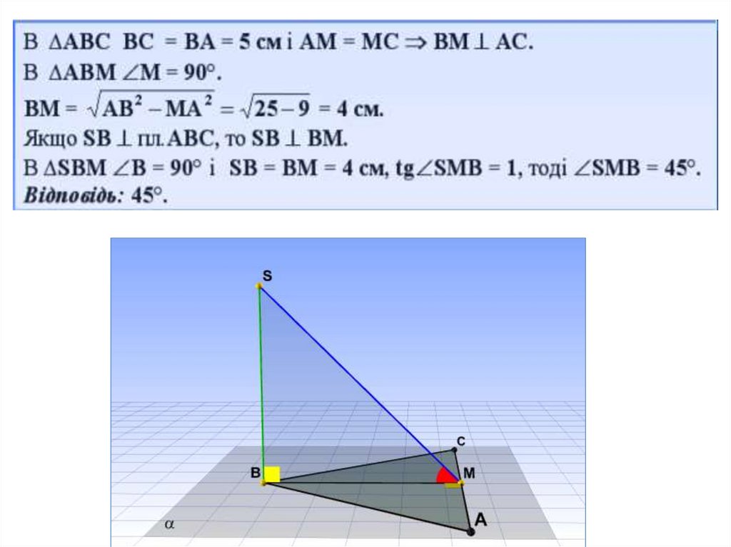 площини довжиною 4 см. Знайдіть SMB, де точка М —