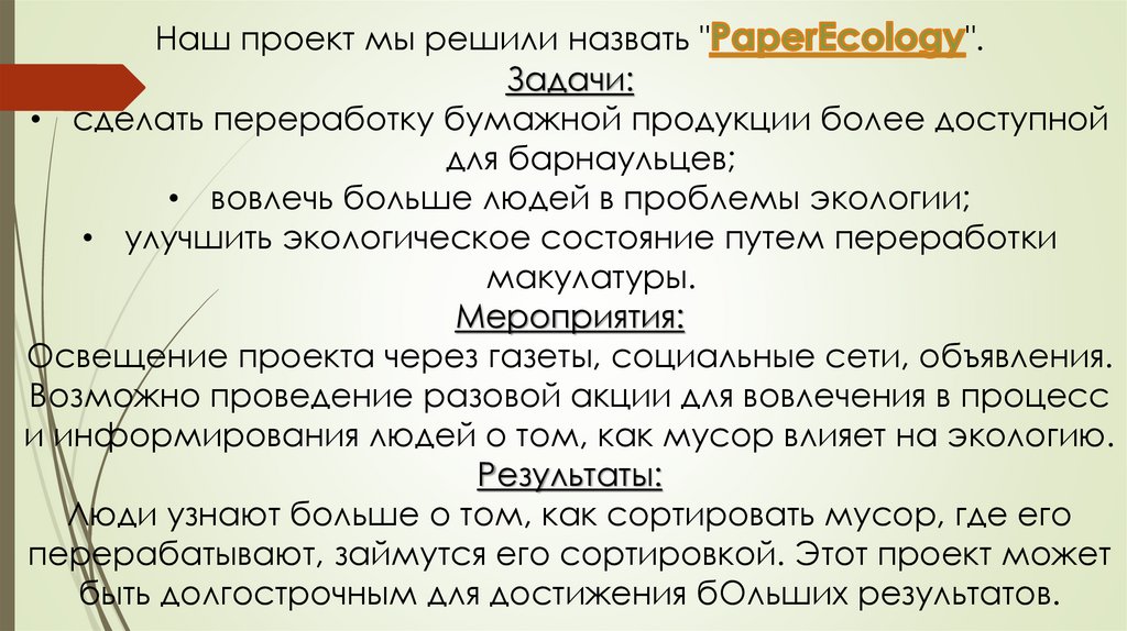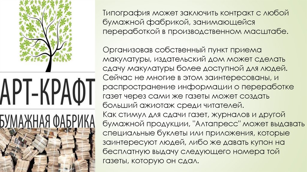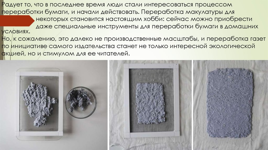 Но, к сожалению, это далеко не производственные масштабы, и переработка газет