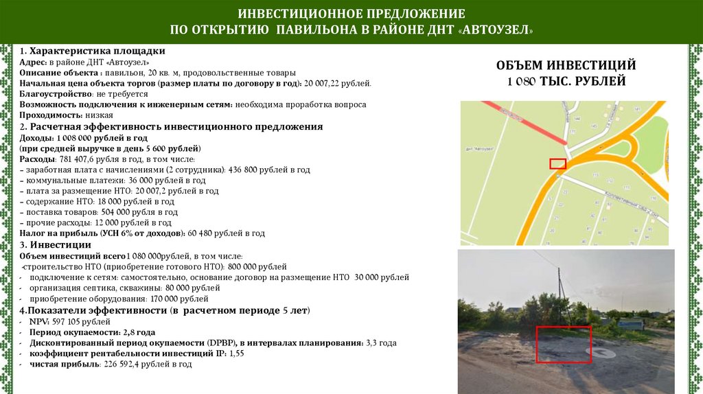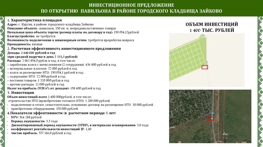 ИНВЕСТИЦИОННОЕ ПРЕДЛОЖЕНИЕПО ОТКРЫТИЮ ПАВИЛЬОНА В РАЙОНЕ ГОРОДСКОГО КЛАДБИЩА ЗАЙКОВО