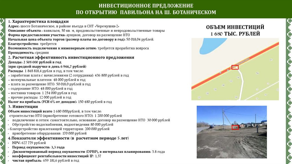 ИНВЕСТИЦИОННОЕ ПРЕДЛОЖЕНИЕПО ОТКРЫТИЮ ПАВИЛЬОНА НА Ш. БОТАНИЧЕСКОМ