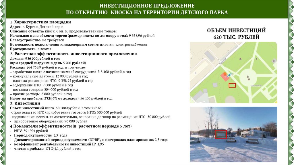 ИНВЕСТИЦИОННОЕ ПРЕДЛОЖЕНИЕПО ОТКРЫТИЮ КИОСКА НА ТЕРРИТОРИИ ДЕТСКОГО ПАРКА