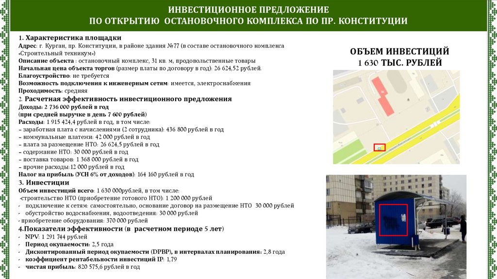 ИНВЕСТИЦИОННОЕ ПРЕДЛОЖЕНИЕПО ОТКРЫТИЮ ОСТАНОВОЧНОГО КОМПЛЕКСА ПО ПР. КОНСТИТУЦИИ