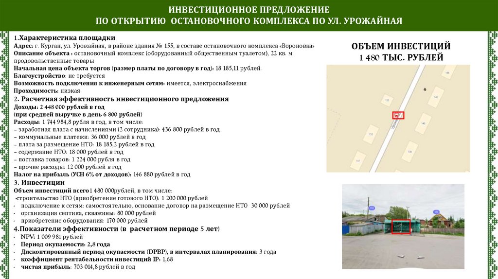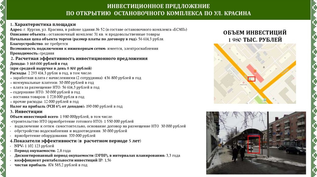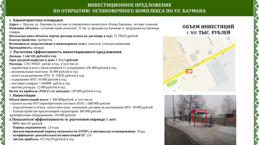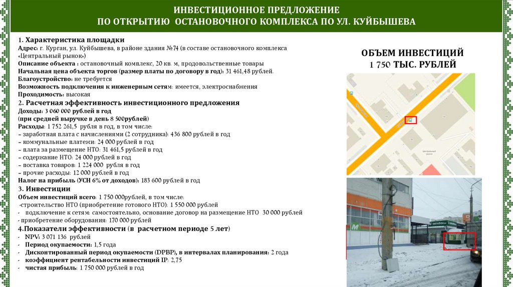 ИНВЕСТИЦИОННОЕ ПРЕДЛОЖЕНИЕПО ОТКРЫТИЮ ОСТАНОВОЧНОГО КОМПЛЕКСА ПО УЛ. КУЙБЫШЕВА