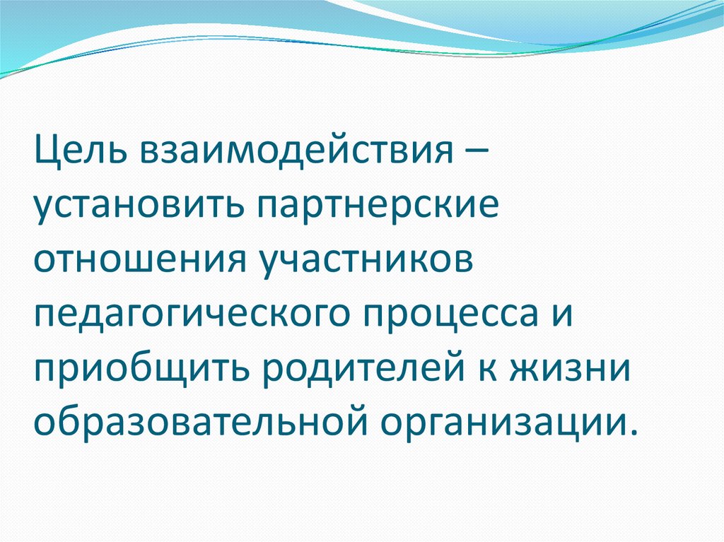 Цель взаимодействия –установить партнерские