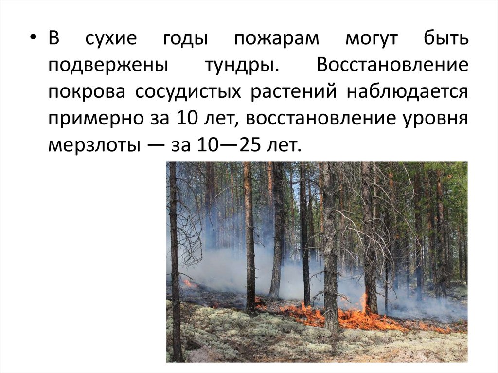 • В сухие годы пожарам могут бытьподвержены