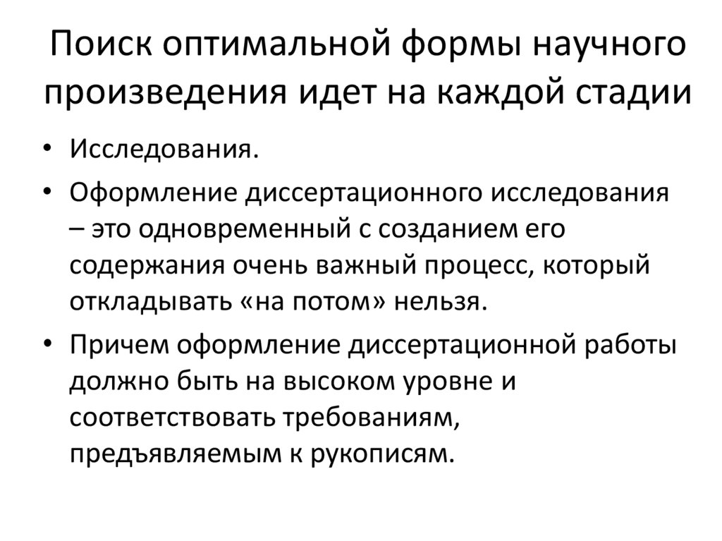 Поиск оптимальной формы научногопроизведения идет на каждой стадии