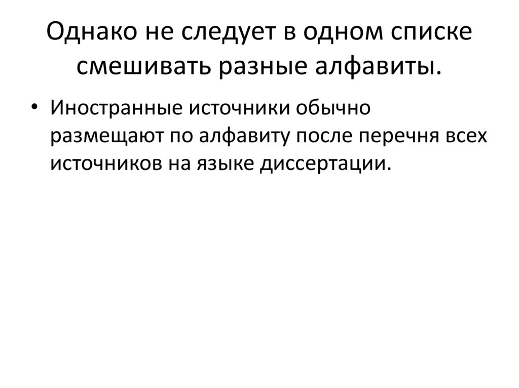 Однако не следует в одном спискесмешивать разные алфавиты.