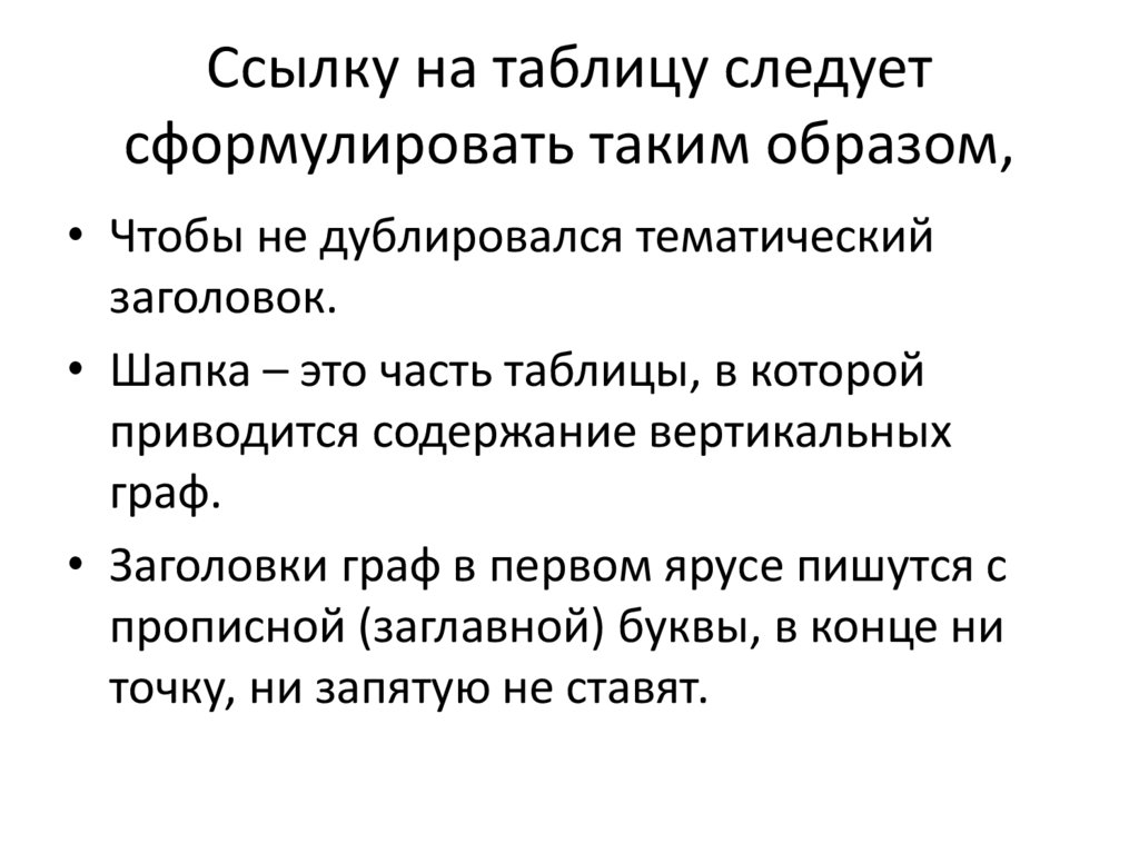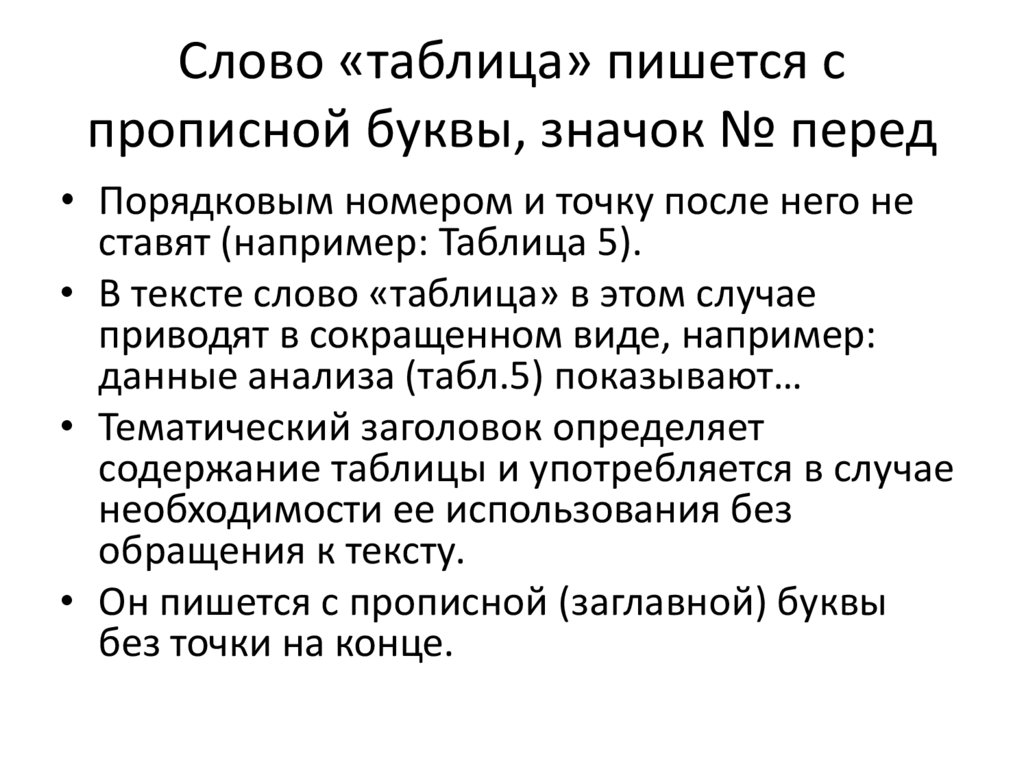 Слово «таблица» пишется спрописной буквы, значок № перед
