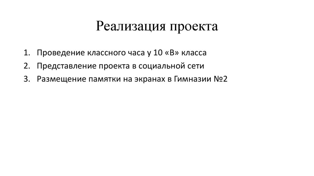 Реализация проекта1. Проведение классного часа у 10 «В» класса