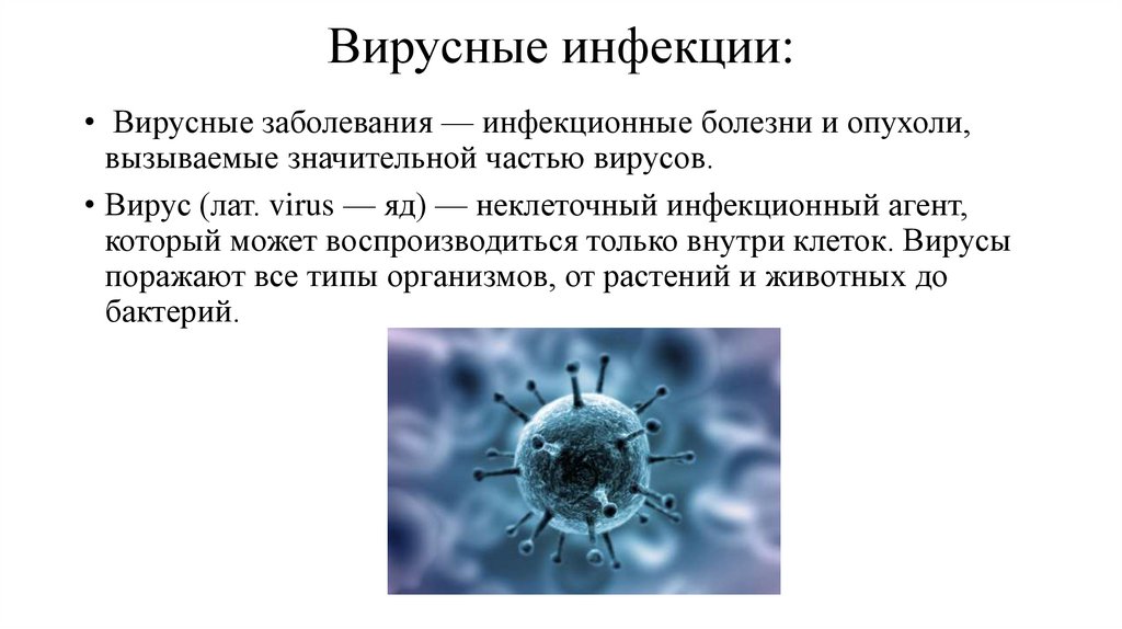 Вирусные инфекции:• Вирусные заболевания — инфекционные болезни и опухоли,