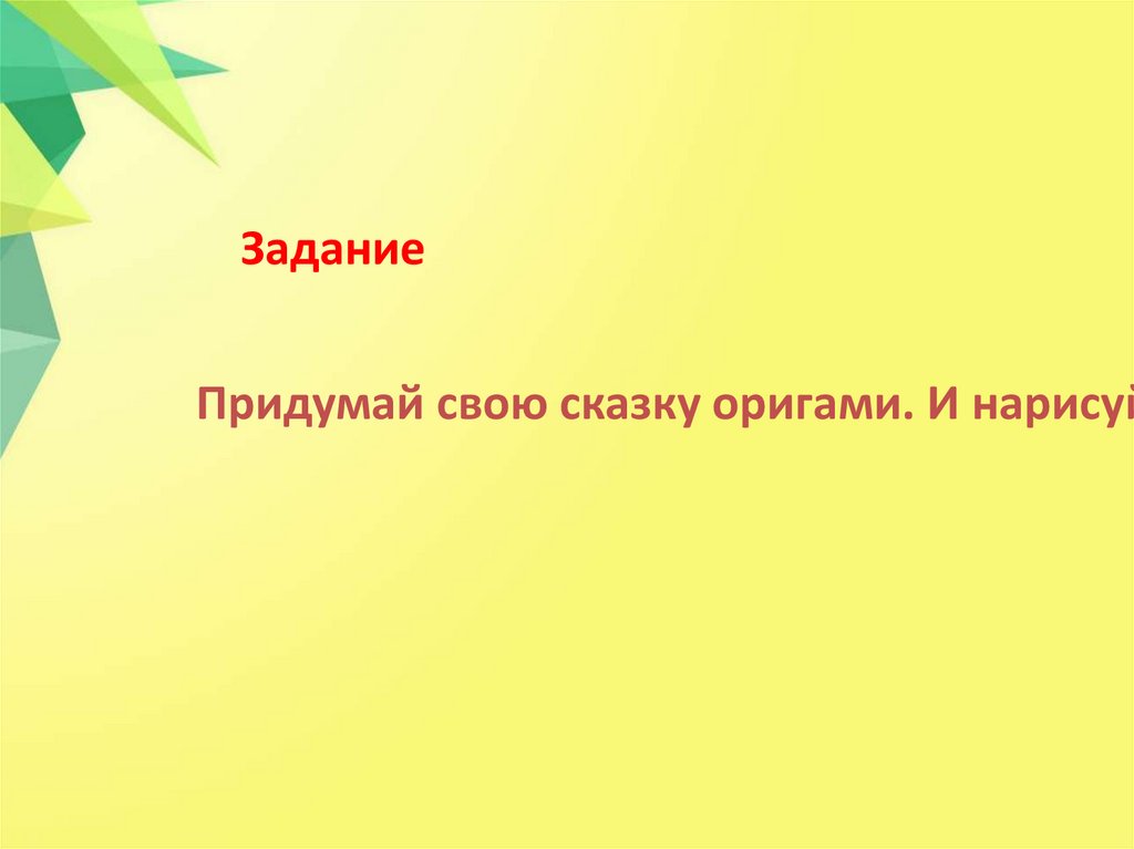 ЗаданиеПридумай свою сказку оригами. И нарисуй