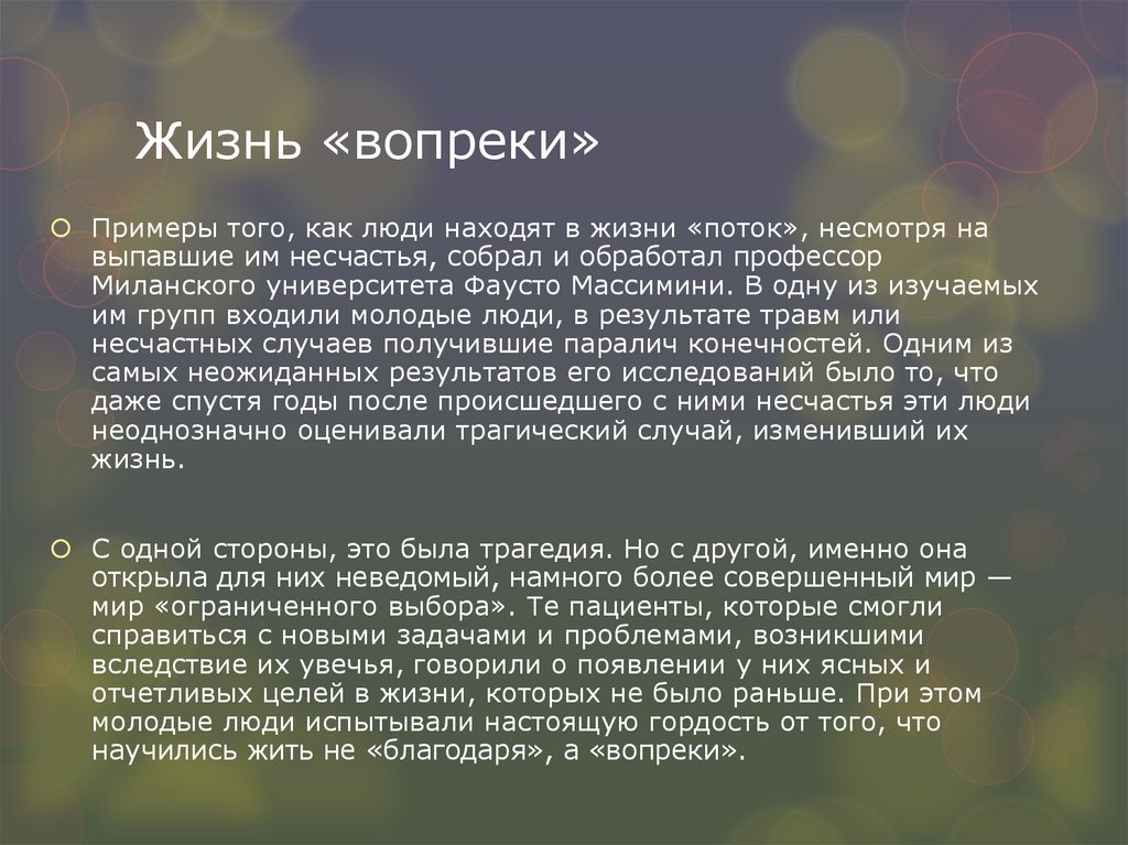 Жизнь «вопреки»Примеры того, как люди находят в жизни «поток», несмотря на