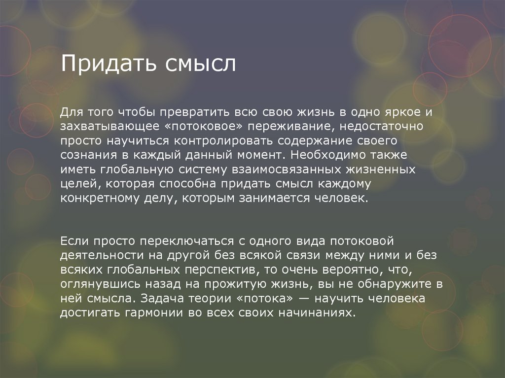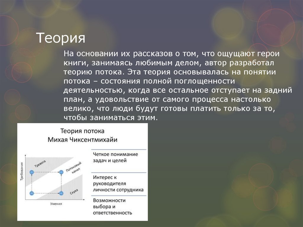 Концепция «состояния потока»М. Чиксентмихайи задумался о том, может ли процесс
