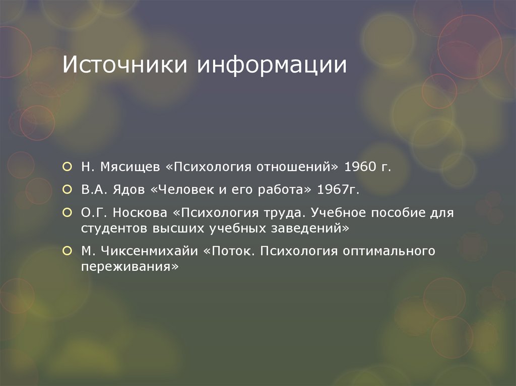 Источники информацииН. Мясищев «Психология отношений» 1960 г.