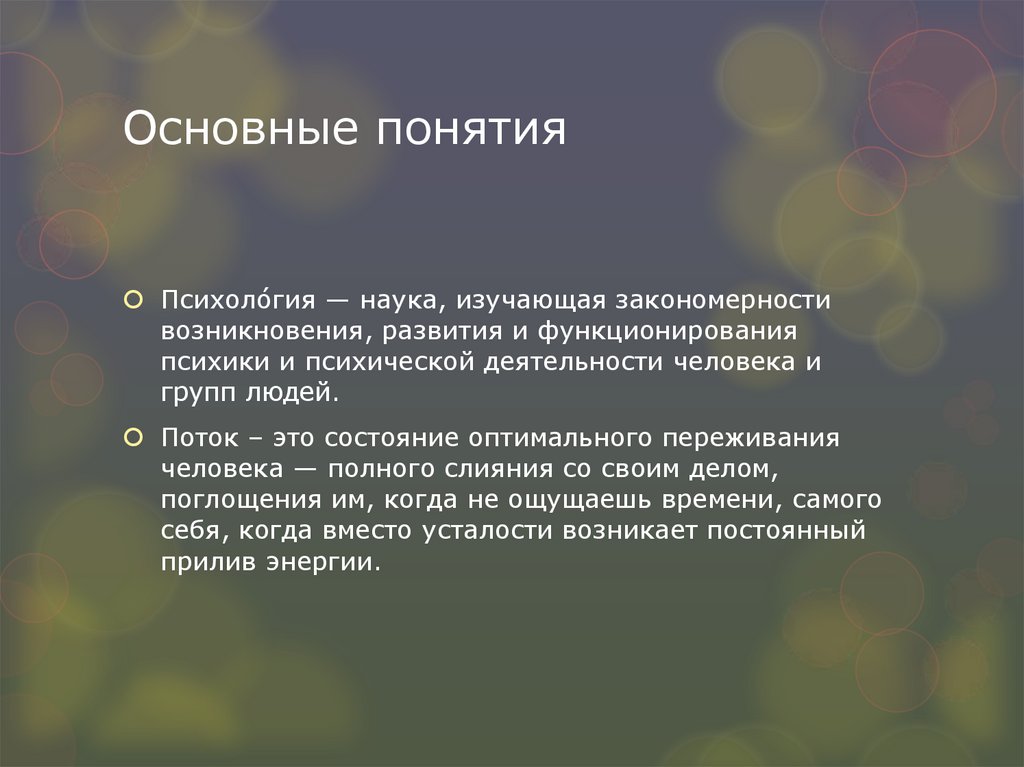 Основные понятияПсихоло́гия — наука, изучающая закономерности