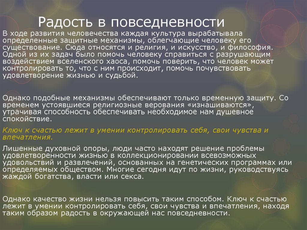 Радость в повседневностиВ ходе развития человечества каждая культура вырабатывала