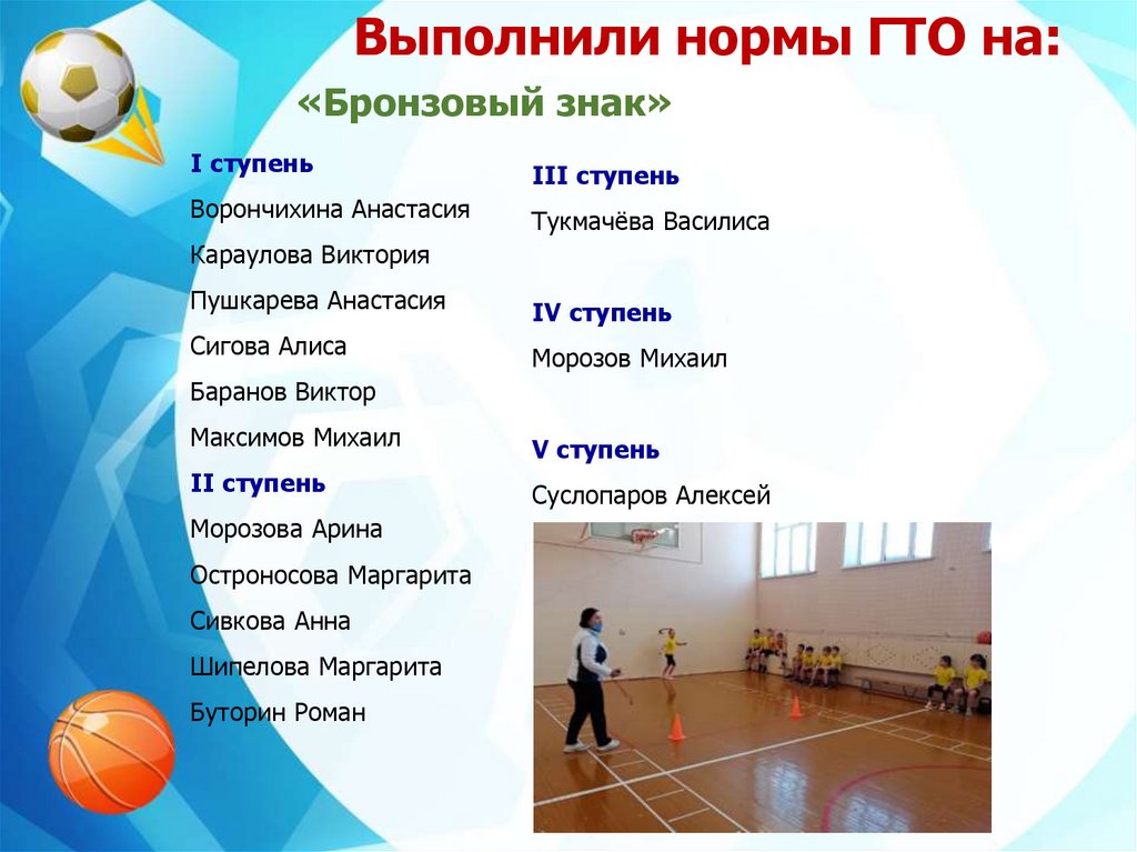 Выполнили нормы ГТО на:«Бронзовый знак»