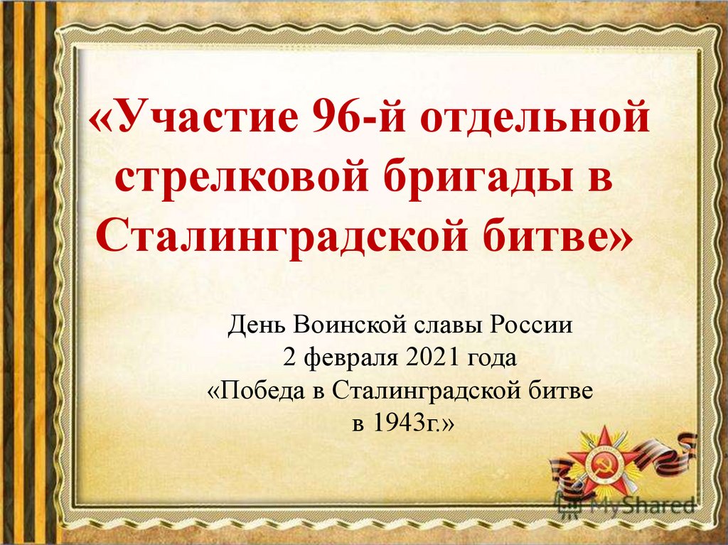 Участие 96-й отдельной стрелковой бригады в Сталинградской битве