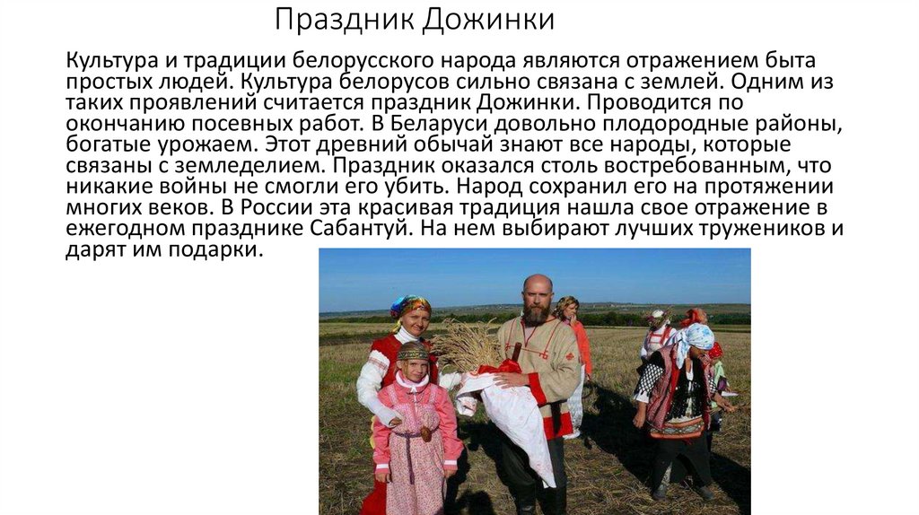 Праздник ДожинкиКультура и традиции белорусского народа являются отражением быта