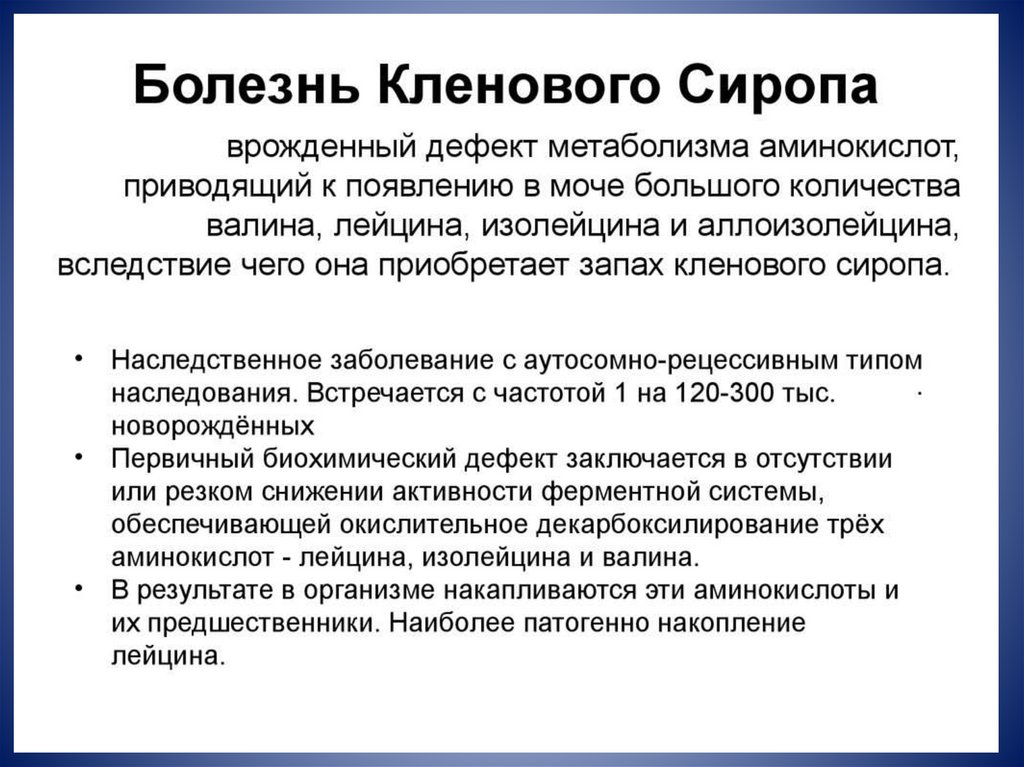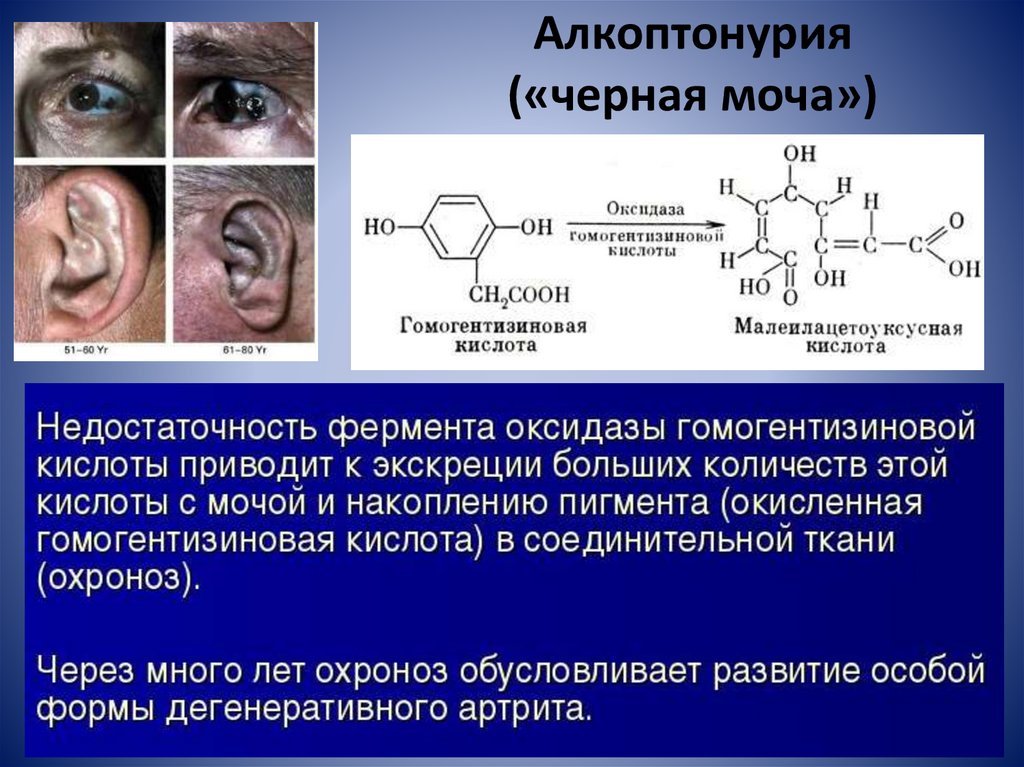окисляется, окрашивая мочу в голубой цвет. Наблюдатся