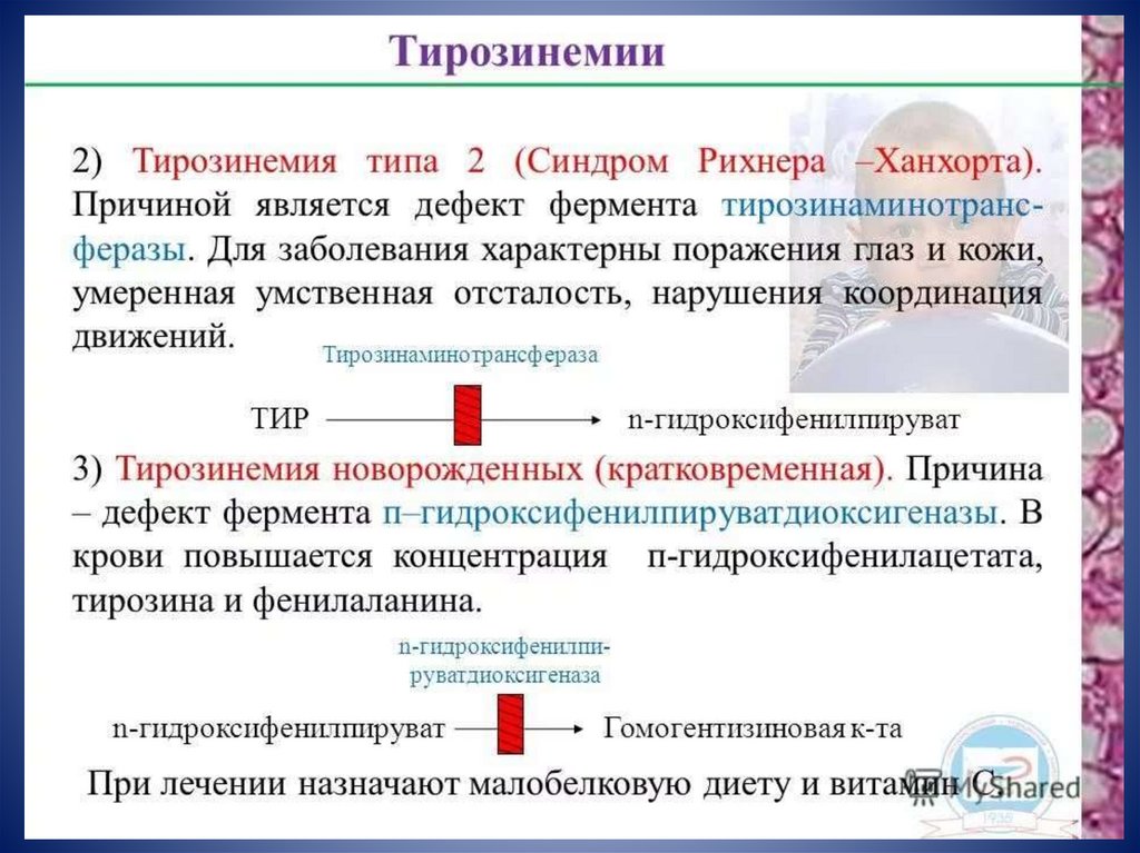 (карциноидная опухоль, фенилкетонурия и др.) и о механизме нарушения