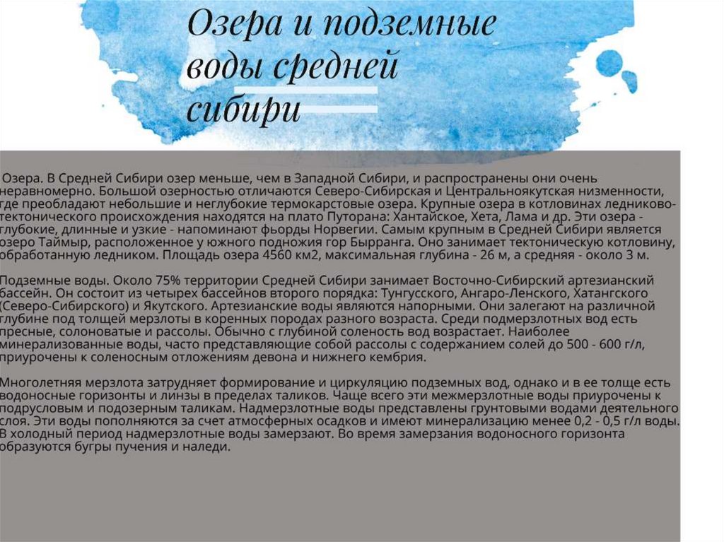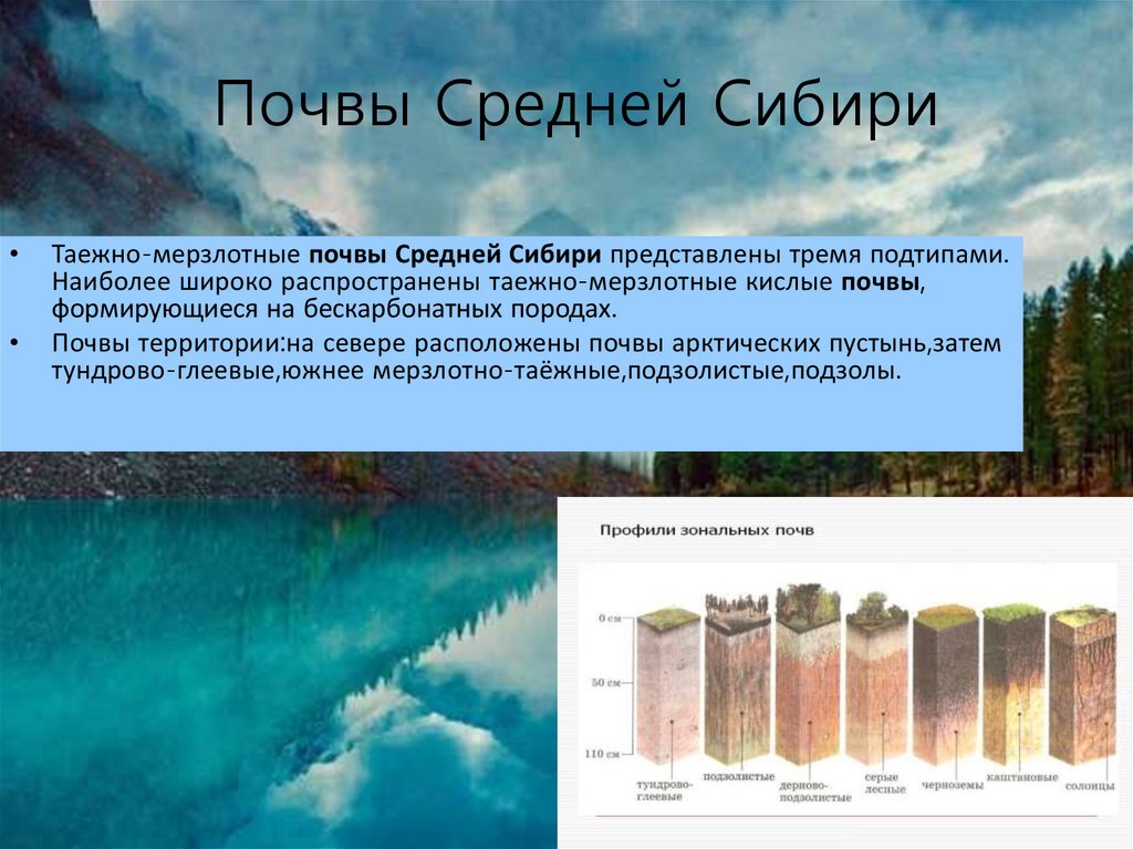 Почвы Средней СибириТаежно-мерзлотные почвы Средней Сибири представлены тремя подтипами.
