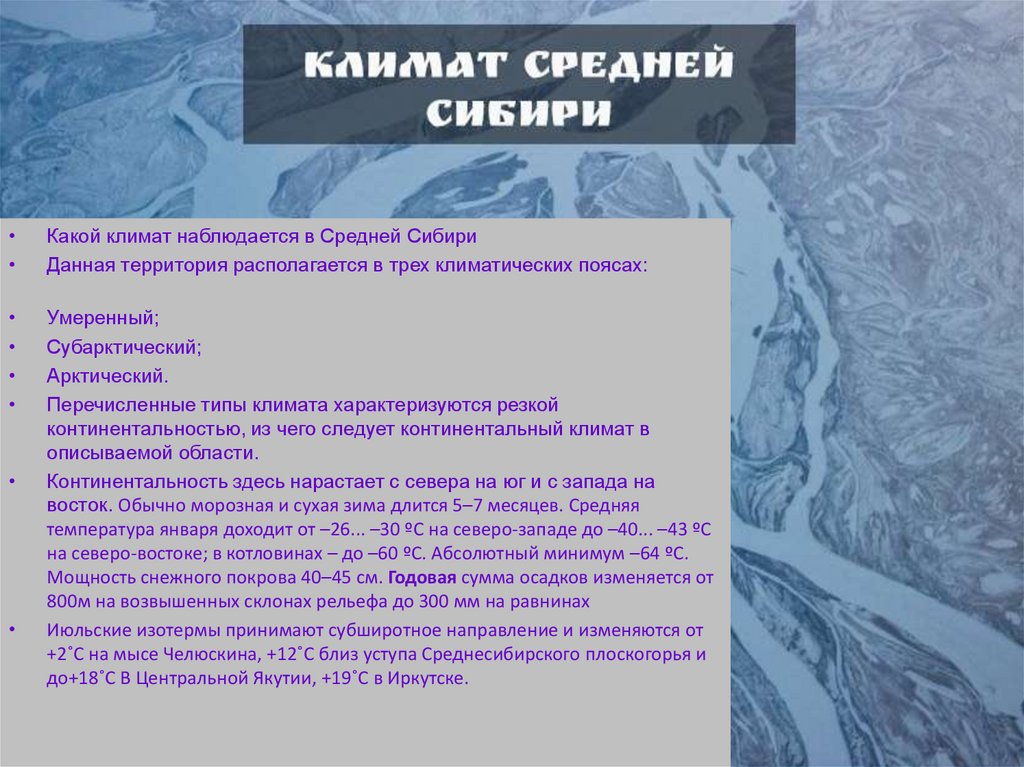 Какой климат наблюдается в Средней Сибири