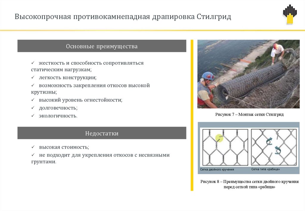 Высокопрочная противокамнепадная драпировка СтилгридОсновные преимущества