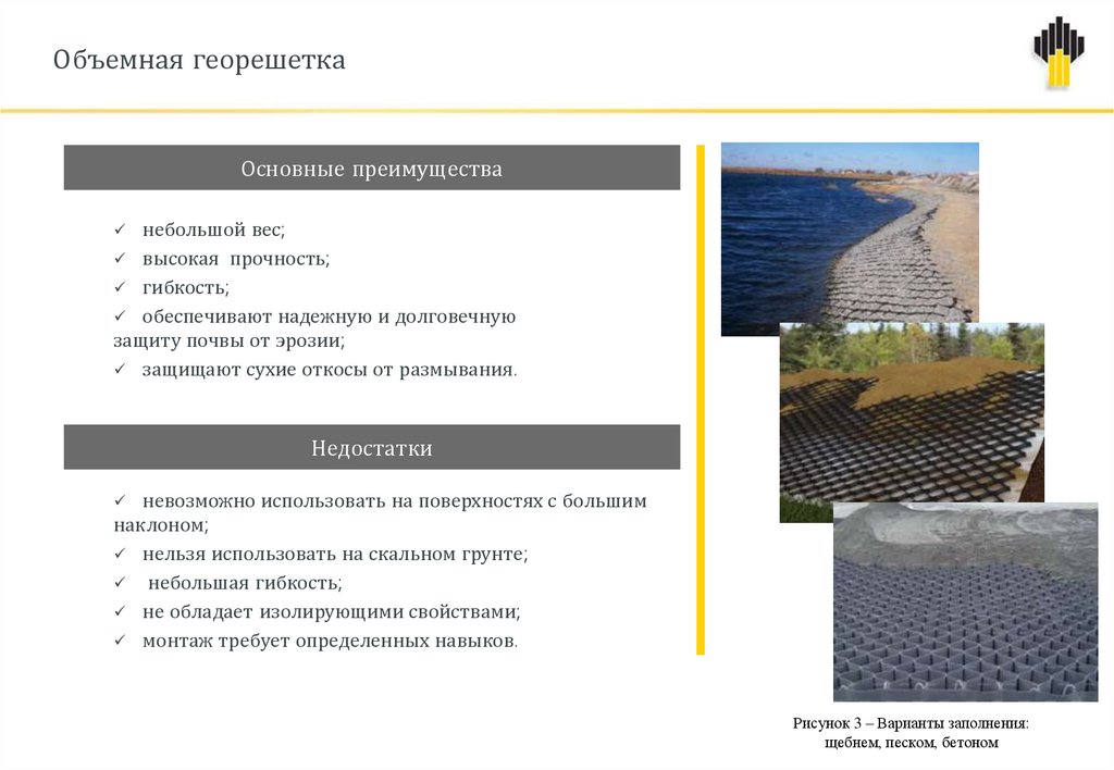Объемная георешеткаОсновные преимущества