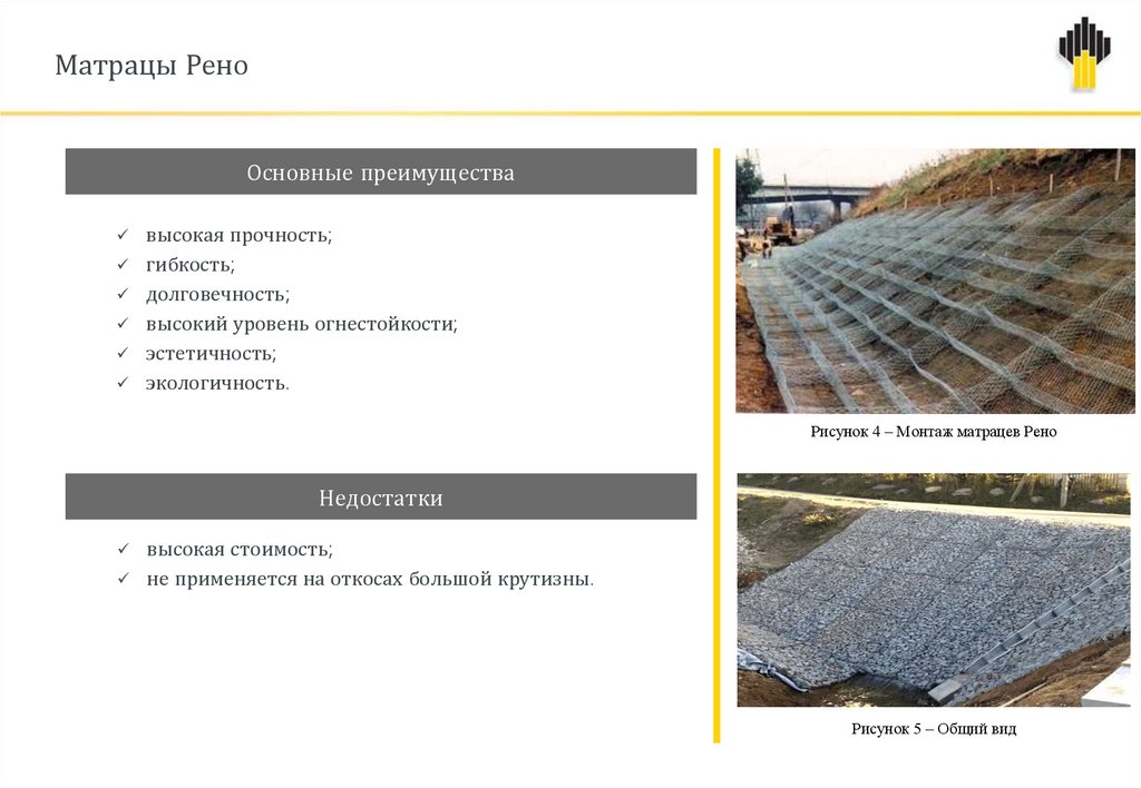драпировкой «Стилгрид»; укрепление матрацами «Рено».
