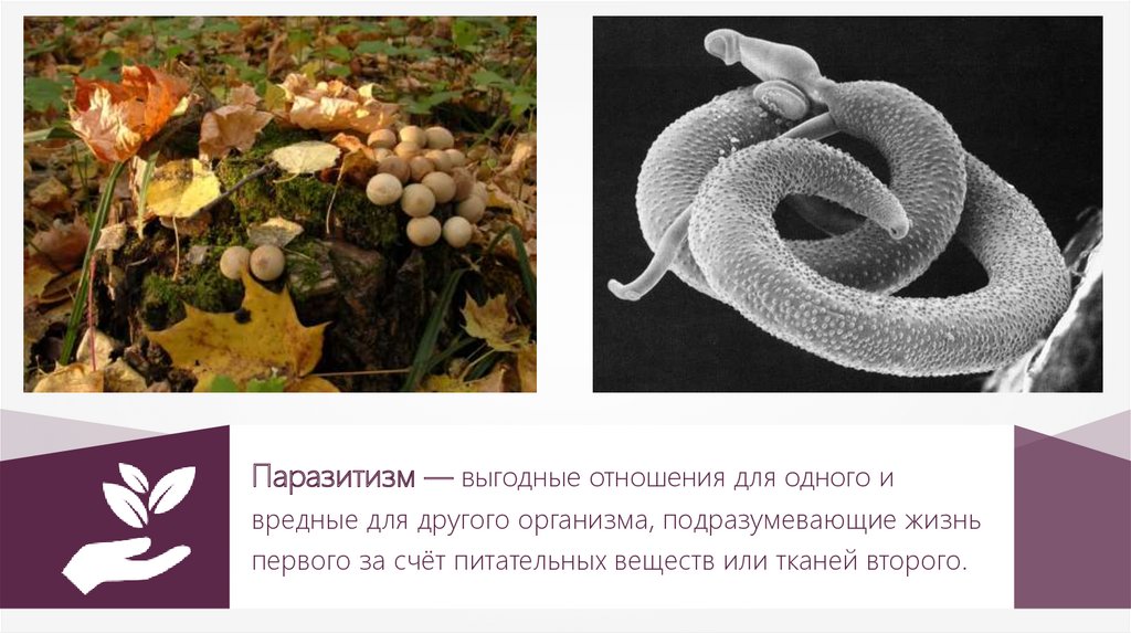 Паразитизм — выгодные отношения для одного ивредные для другого организма, подразумевающие жизнь