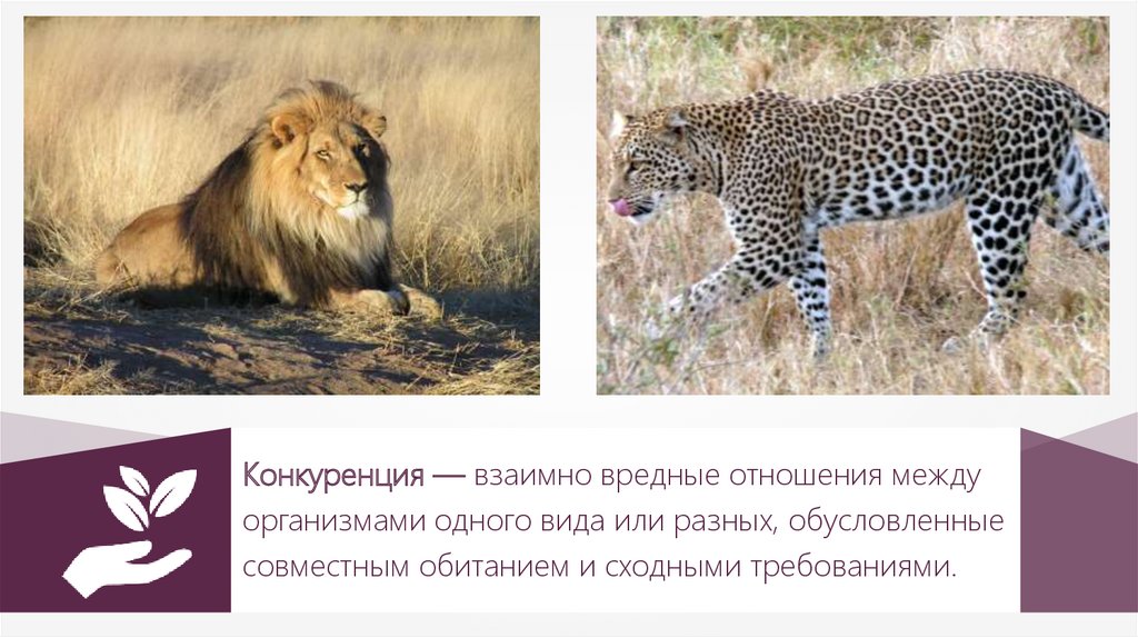 Конкуренция — взаимно вредные отношения междуорганизмами одного вида или разных, обусловленные