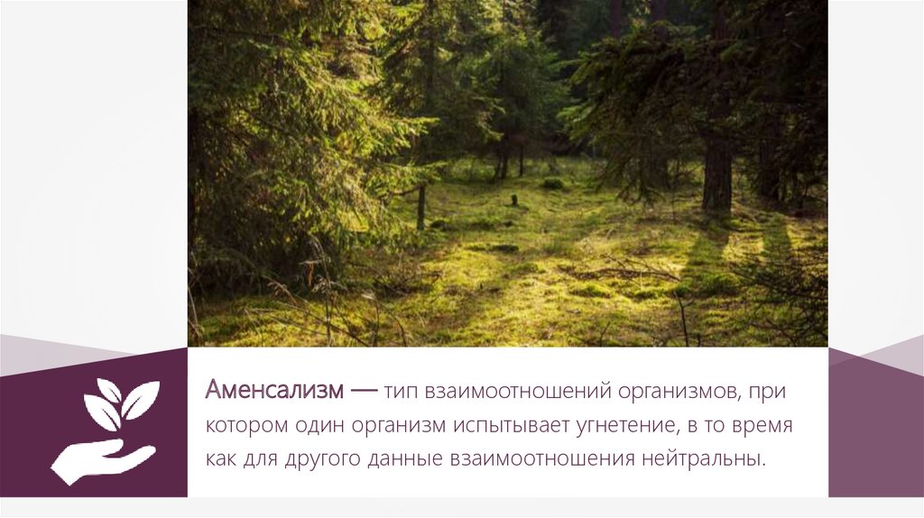 Аменсализм — тип взаимоотношений организмов, прикотором один организм испытывает угнетение, в то время