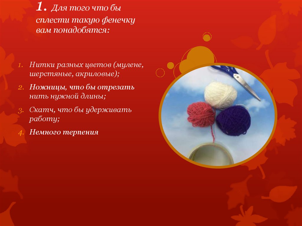 1. Для того что бысплести такую фенечку