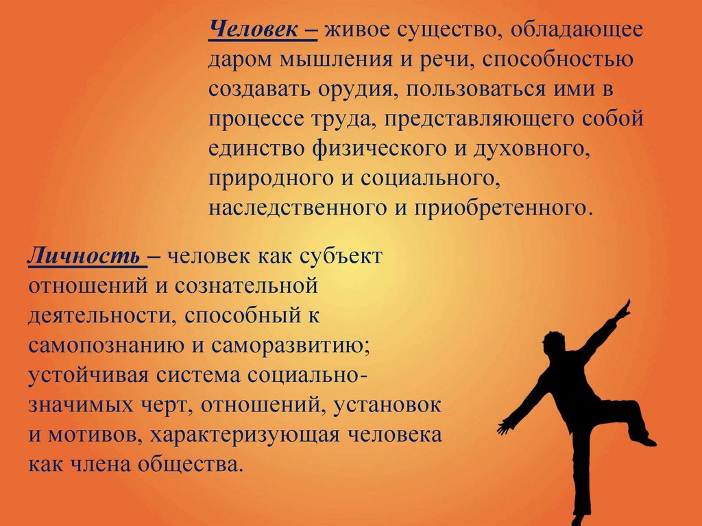 Человек – живое существо, обладающеедаром мышления и речи, способностью