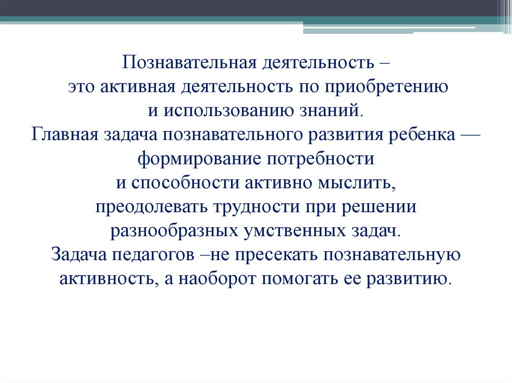 Познавательная деятельность –это активная деятельность по приобретению