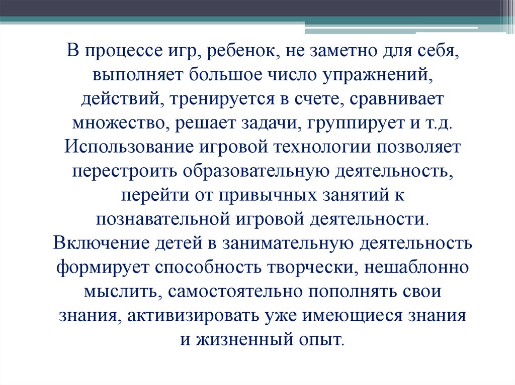 Использование игровой технологии позволяет