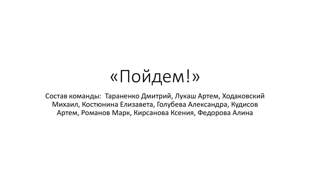 «Пойдем!»Состав команды: Тараненко Дмитрий, Лукаш Артем, Ходаковский