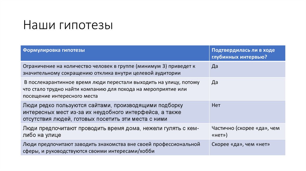 Наши гипотезыФормулировка гипотезы